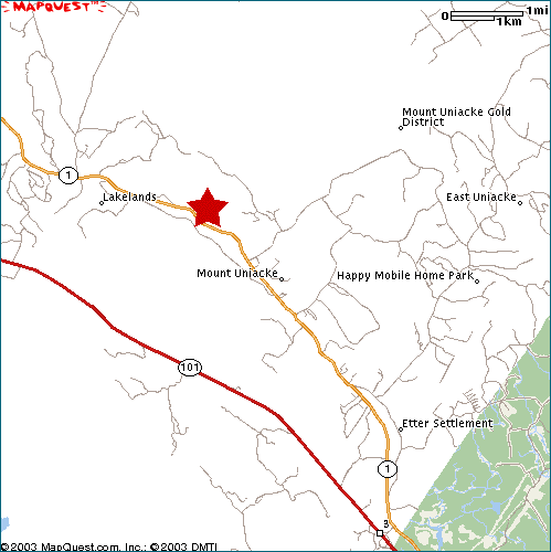 4. Follow highway #1 for exactly 7.5kms to Uniacke Mines Road (on your right). Turn right and travel down Uniacke Mines Road.