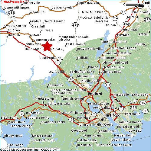 highway #1 for exactly 7.5kms to Uniacke Mines Road (on your right).